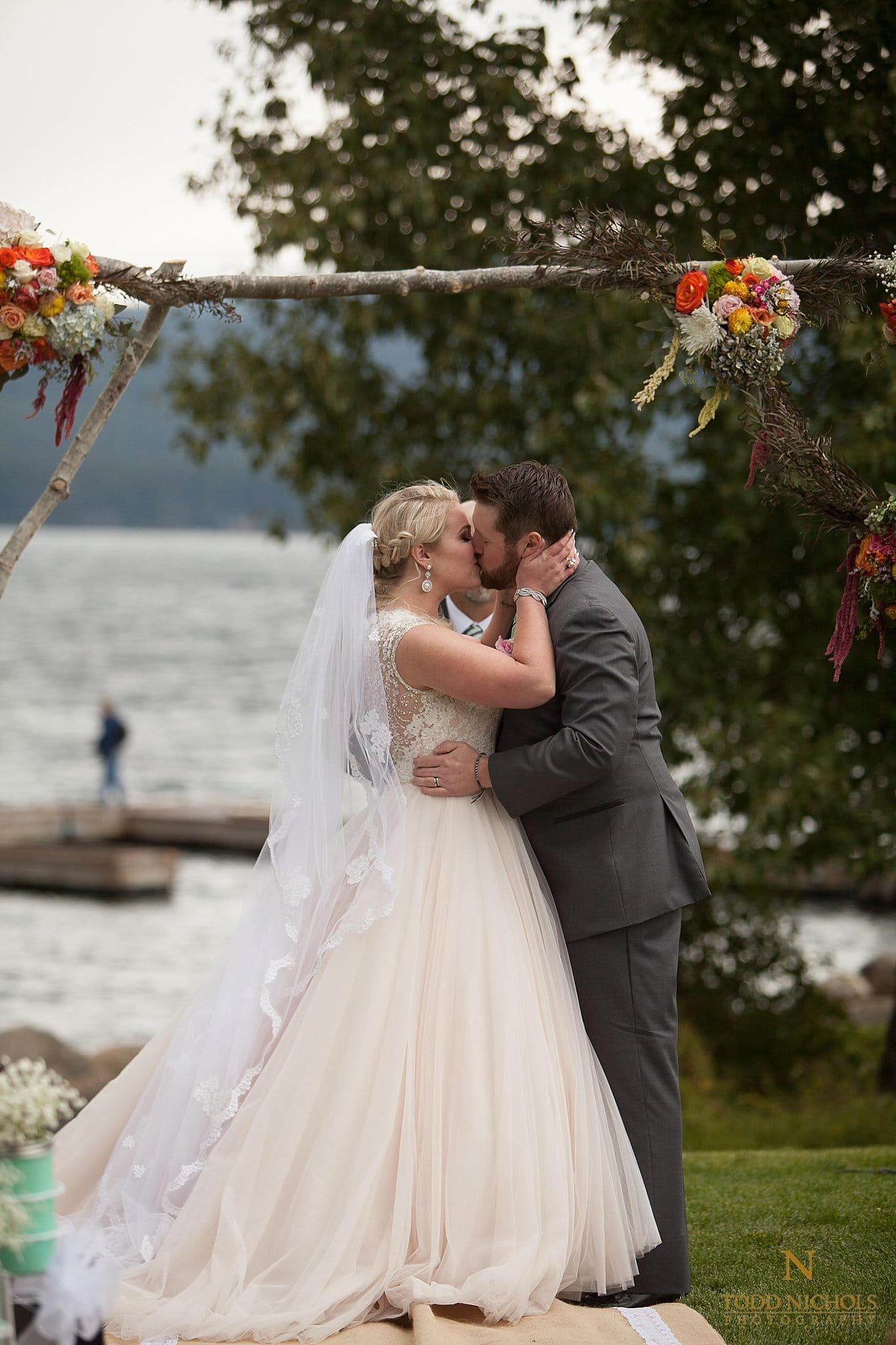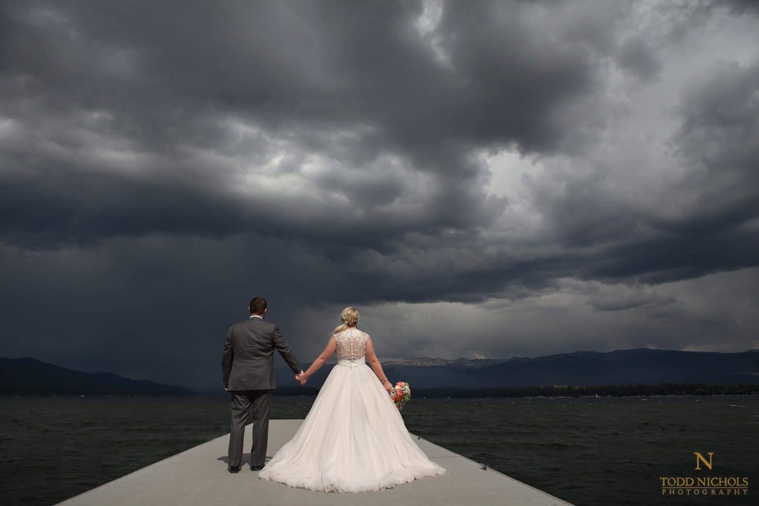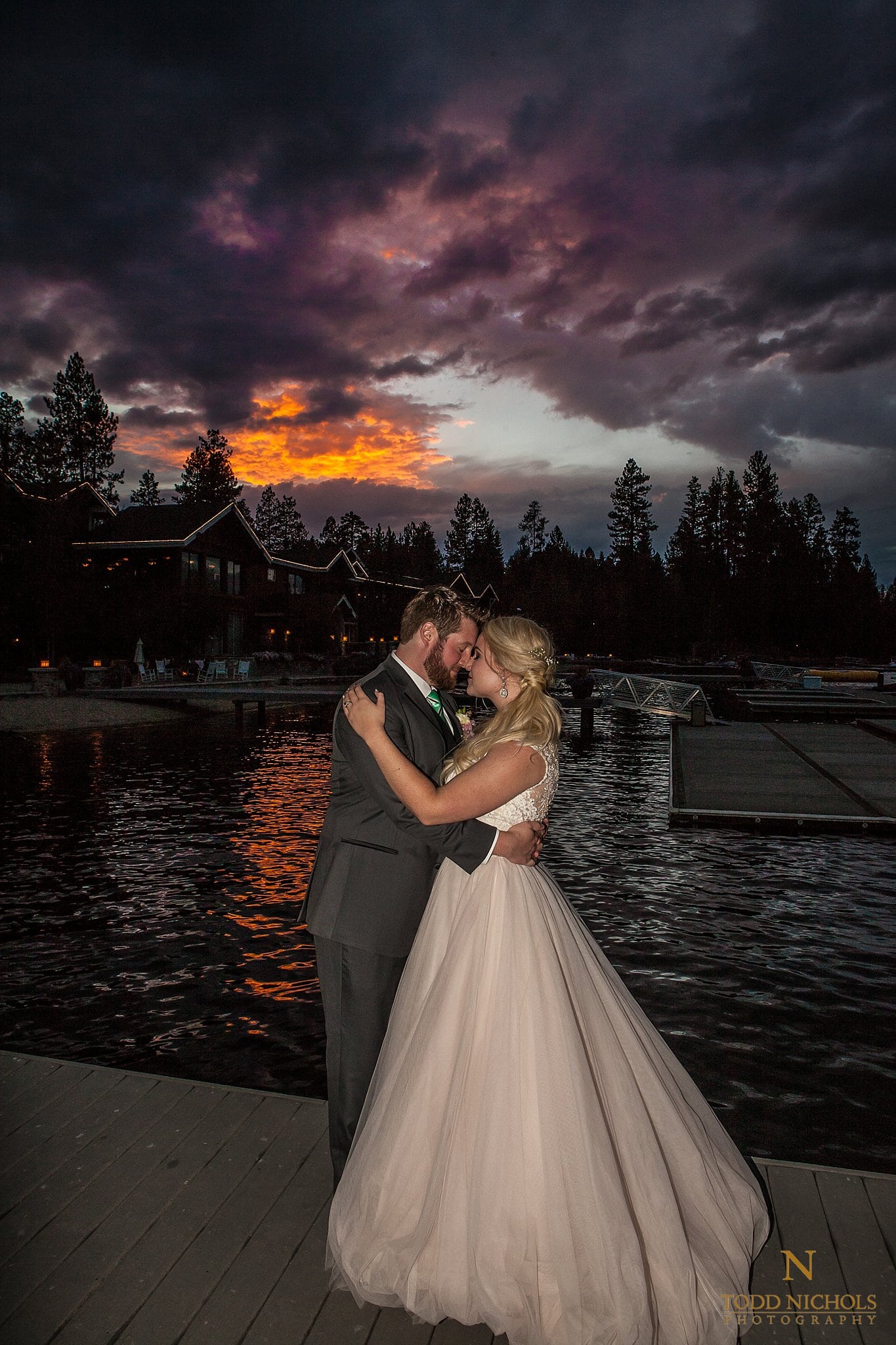 We also got to experience the thrill of shooting on ice. Tori & Brendan skated around the Manchester Ice and Event Center in McCall while we burned it up with our cameras! The hour seemed to go by too quickly, but we captured so many unique and personal-to-them images…. and had a blast in the process. We love it when our brides and grooms have unique photo ideas that showcase their personalities! Brendan and Tori are both hockey fans and Brendan has recently become a professional hockey referee. If you’re a steelheads fan you might look for him at the games! The reception at top Condo Naste rated Shore Lodge was spectacular, as you can see from the images below, there was even a rainbow at the end of the dock.