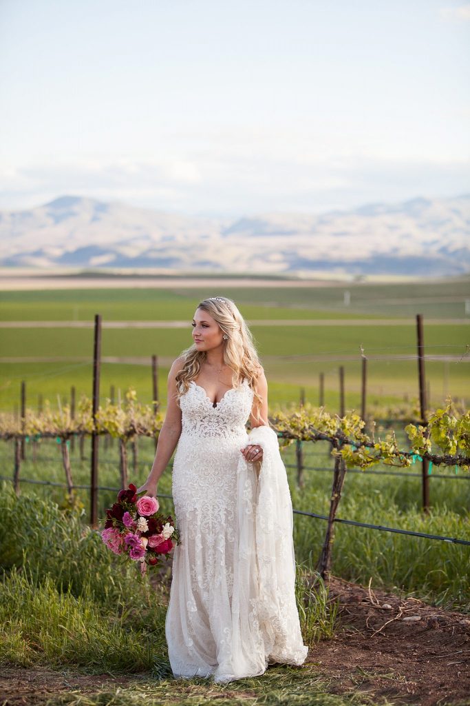 We loved working with CoCo+Nicole Events on this beautiful shoot at the Sawtooth Winery. They created a wonderful setting that would be fit for a queen. I’m so in love with their colorful vintage detailing paired with modern geometric elements! The Sawtooth Winery offers a breathtaking view of the Owyhee mountains to the south, and a 360 degree view of Idaho’s gorgeous wine country. As you can see from these images, the possibilities are endless for your wedding or event here. Blush Creek Specialty rentals supplied the beautiful vintage furniture for this shoot. They have so many gorgeous pieces! Wow, wow wow!! I LOVE the color pairing in the floral!! I’m so not a floral person, I kill everything I try to grow but I know an amazing floral combination when I see it. Loving how Rust + Thistle put the florals together here. Check out the floral piece over the table also! Soundwave Events crafted the custom floral and lighting piece over the table as well as provided lighting for this shoot. I can’t tell you what a difference lighting makes in the whole mood of an event! It’s HUGE! We know we will always see a stunning gown when we work with LaNeige Bridal Salon in Boise. They did not disappoint! Freaking out over this beautiful wedding dress and love the train, it makes for so much drama in the images! And YESSSSS….this cake! Macramé…oh yeah! Totally on point with that design. Awesome job by Flour Child Bakery in Boise! Thank you Coco+Nicole for this beautiful wedding inspiration!