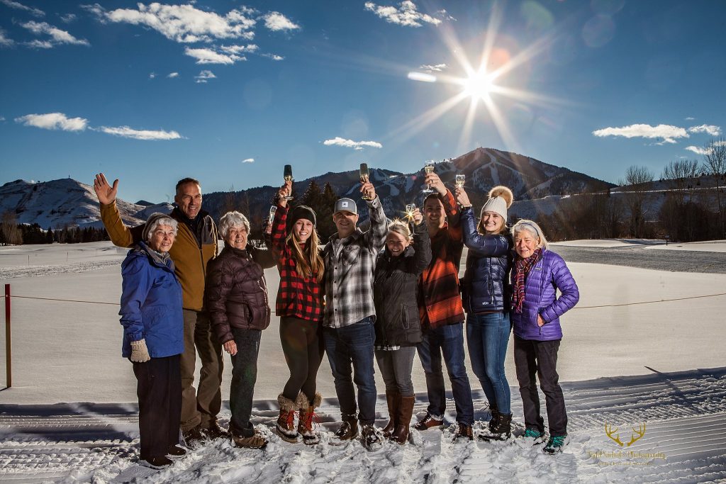 This Sun Valley surprise engagement proposal was perfect! Matthew called us several weeks before the proposal and we talked about different location options and timing. We had a super windy day on the day of the proposal and so we opted not to do a mountaintop location like we had planned and went with our backup location close to the Sun Valley Club. Fortunately the wind died down and the sun was out and it was gorgeous with the fresh snow and flocked trees! The proposal went off perfectly and most importantly Stine said yes! We brought champagne and flutes for the celebratory toast. So fun to just bury it in the snow until the right moment and whip it out for the happy couple! We then took pictures close to Trail Creek cabin and just had fun with them! Then we went back to the Sun Valley Club and met up with Stine’s family where the engagement was announced! There was much celebrating and toasts all around which we captured below. Congratulations Matthew and Stine! We loved being there for this super special moment and meeting you both! We hope to see you back in Sun Valley for your wedding day! We love you guys!
